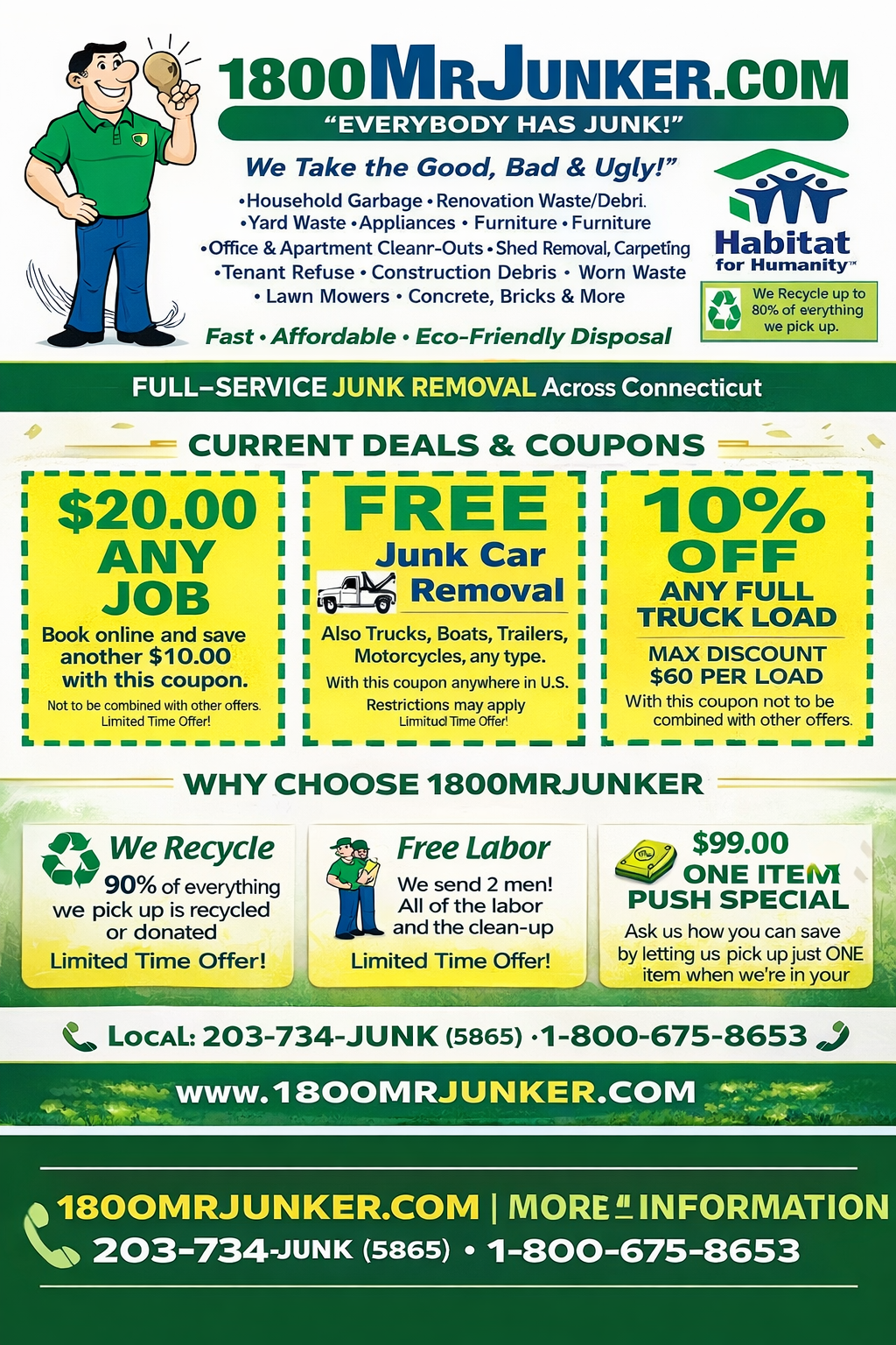 Looking for the best junk removal deals in Connecticut? At 1-800-MrJunker, we offer affordable junk removal services with exclusive coupons, discounts, and limited-time offers for homeowners, businesses, and property managers across the state.
